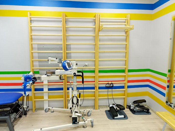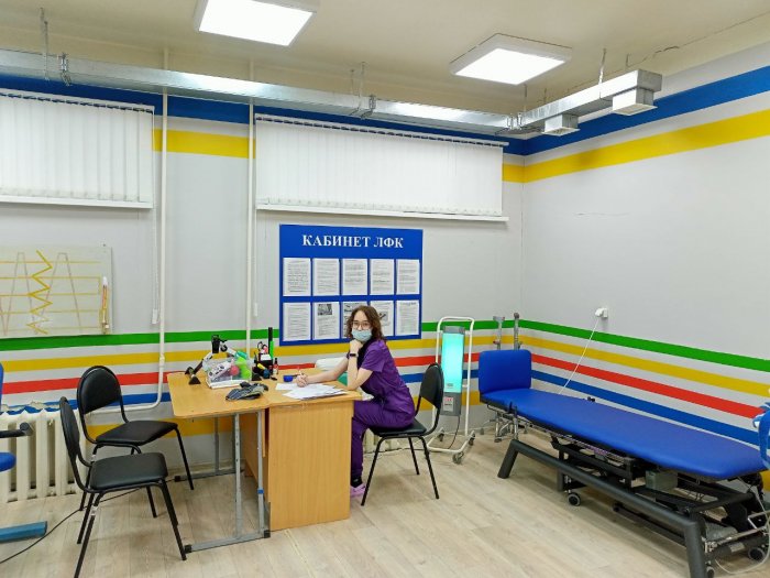Открыты кабинеты ЛФК, массажный кабинет, тренажерный зал, также лечение проводится в кабинетах физиотерапии.